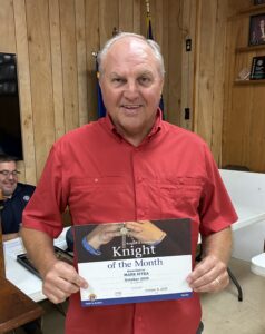 August Knight of the Month is Bonny Krahn. Bonny joined the Council less than two years ago, but he jumped right in helping at the Wild Game Supper and Fish Fries, and has recruited his son and Grandson. Bonny also serves as Outside Guard for the Council